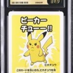 The Pikachu with Grey Felt Hat from the SVP promo set, a unique black star promo rarity, slabbed in PSA 10. This one’s got that artistic flair, with Pikachu sporting a grey hat and a paintbrush, channeling some old master vibes in a sunny field. The pose? It’s got Pikachu looking ready to sketch up a storm, ears perked and all.