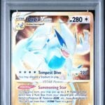 In the PSA 9 slab, you’re looking at strong centering, probably 9s or better on edges and corners, with the holo foil still gleaming without major scratches. Eye appeal is high thanks to that vibrant green hue and the clean borders—it’s the kind of card that draws stares in a display case. Pop reports put graded 9s in the low hundreds last I checked, keeping it uncommon but not impossible to chase.